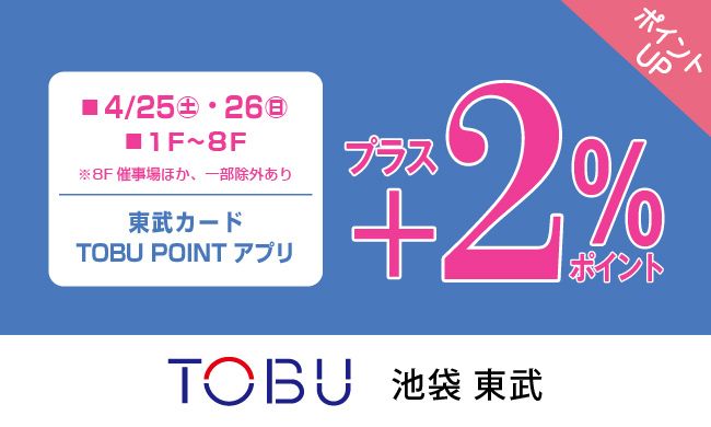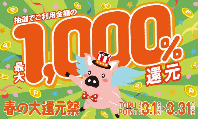 5のつく日のポイントアップなど、TOBU POINTではおトクなキャンペーンを随時開催。季節や店舗ごとの企画もあり、対象商品の購入でボーナスポイントや限定特典もゲットでき、おトクにポイントをおためいただけます。