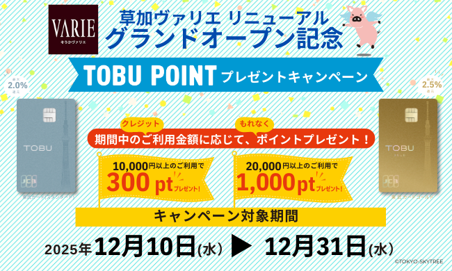 会員向け2025/12/10〜2025/12/31【草加ヴァリエ】グランドオープン記念 東武カードご利用TOBU POINTプレゼントキャンペーン -