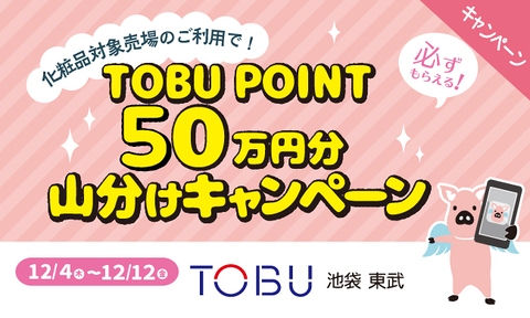 5のつく日のポイントアップなど、TOBU POINTではおトクなキャンペーンを随時開催。季節や店舗ごとの企画もあり、対象商品の購入でボーナスポイントや限定特典もゲットでき、おトクにポイントをおためいただけます。