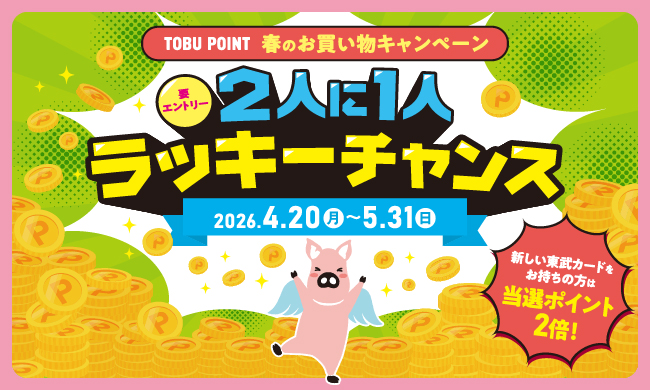 5のつく日のポイントアップなど、TOBU POINTではおトクなキャンペーンを随時開催。季節や店舗ごとの企画もあり、対象商品の購入でボーナスポイントや限定特典もゲットでき、おトクにポイントをおためいただけます。